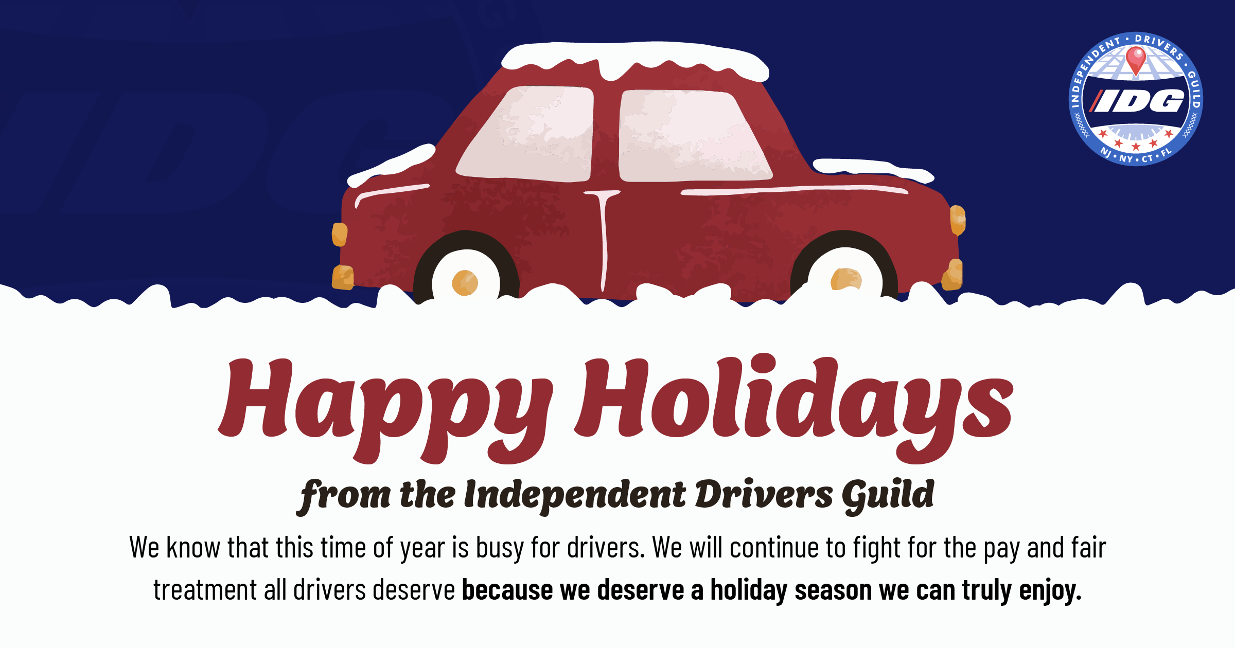 As always, IDG will continue fighting for the pay, protections, and respect that every driver deserves. Wishing you and your loved ones a warm, safe, and joyful holiday season.